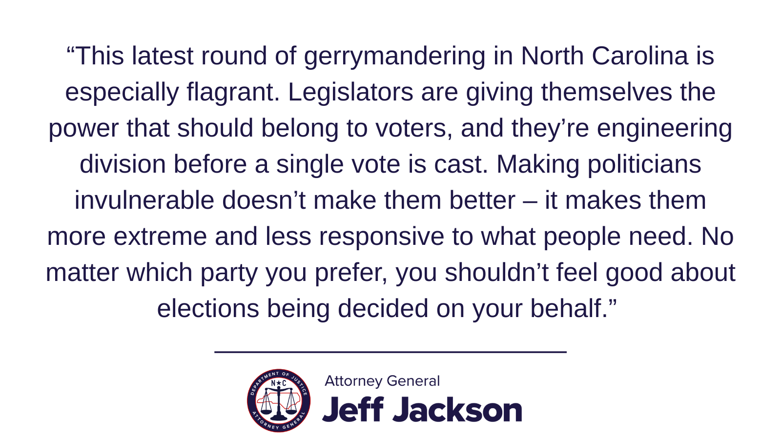Attorney General Jeff Jackson Statement on Gerrymandered Maps