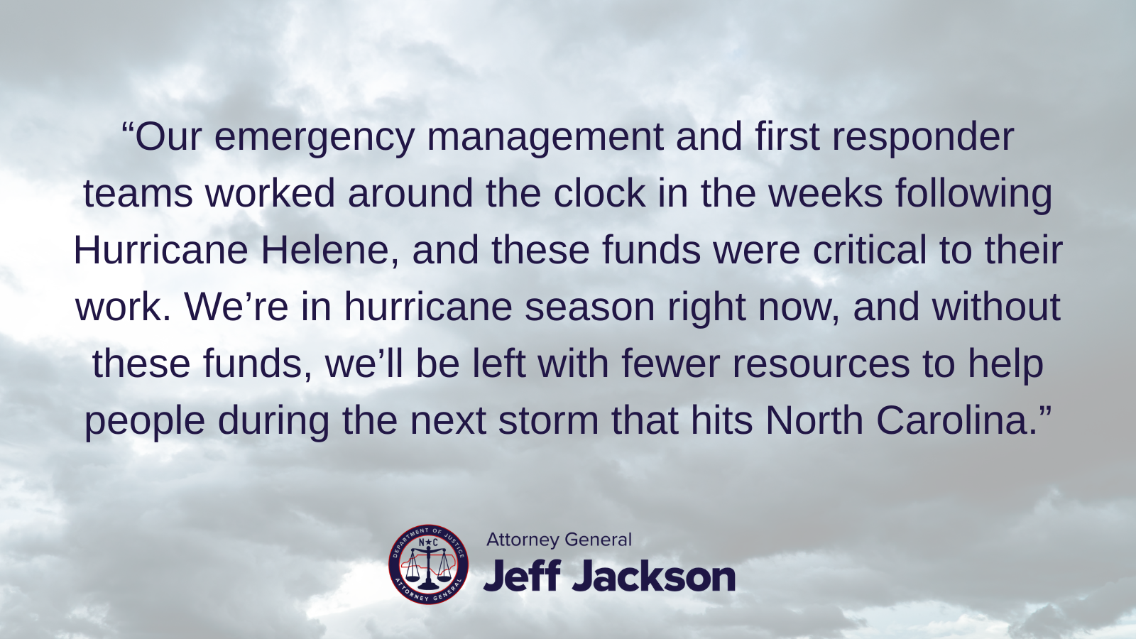 “Our emergency management and first responder teams worked around the clock in the weeks following Hurricane Helene, and these funds were critical to their work,” said Attorney General Jeff Jackson. “We’re in hurricane season right now, and without these funds, we’ll be left with fewer resources to help people during the next storm that hits North Carolina.”